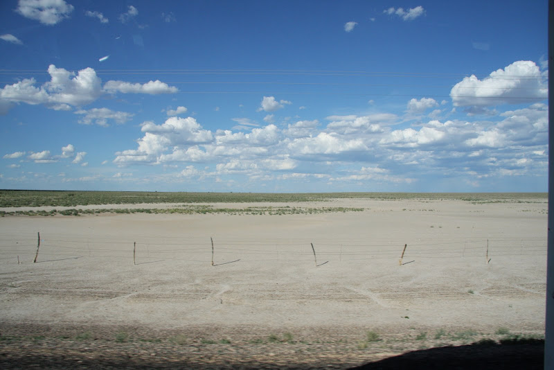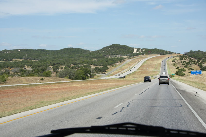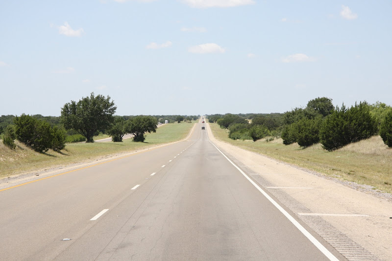 Am nächsten Tag (15. August) stand uns wieder eine längere Fahrt bevor, gute 8 Stunden Fahrt sollten wir unterwegs sein, bis wir endlich bei den Carlsbad Caverns ankommen sollten. Schon in San Antonia merkte man, dass hier eindeutig weniger Regen viel uns auf unserem Weg weiter in den Nordwesten wurde das Gras immer dürrer. Es blieb aber mit den hier wachsenden Büschen doch noch einigermassen grün. Hinzu kamen auch wieder ein paar Hügel, die Pascal schwerzweise als „Grüner Grand Canyon“ bezeichnete. Doch auch hier hatte es nicht mehr enden wollende Strassen. Und gerade zur Grenze zwischen Texas und New Mexico war die Landschaft plattgewälzt mit sehr, sehr wenigen Städten. Wenn es gut kam, sah man unterwegs einmal eine Rinderzucht oder ein Rotsignal! Irgendwann hörten dann sogar die Wolken auf und soweit man blickte sah man die verschwindene Strasse am Horizont, unten grün und oben blau – einzelne Pumpstationen in der Landschaft verteilt.