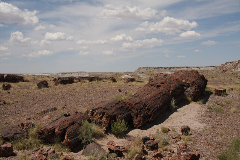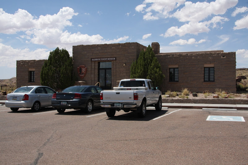Kurz nach der Parkeinfahrt trafen wir auf das Rainbow Forest Museum. In dieser Gegend gibt es das (weltweit?) dichteste Vorkommen von versteinerten Bäumen. Wir liessen das Museum als erstes links liegen und liefen ein bisschen auf dem kurzen Trail dahinter. Mit Hilfe einer Brochure erfuhren wir ein paar einzelne Sachen, aufschlussreich war das allerdings noch nicht.