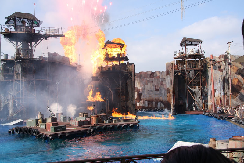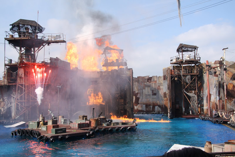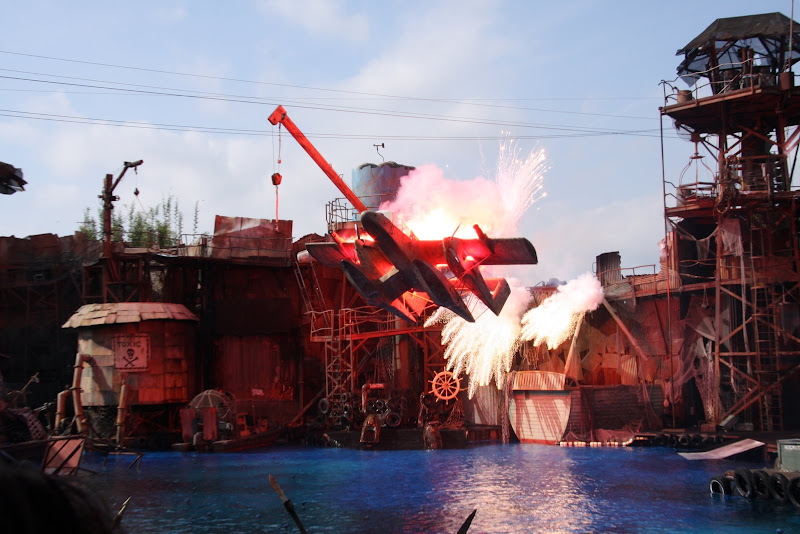 Weitere Highlights sind selbstverständlich die verschiedenen Shows und Rides. Die Waterworld Show übertraf alles bisherige: Viele Pyroeffekte und ein Flugzeug, welches plötzlich einfliegt (nicht an irgendeneiner Leine befestigt) machten das Ganze zu einem Spektakel.
