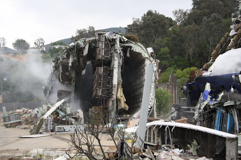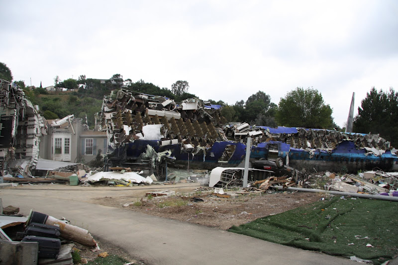 Weiter gab es natürlich auch ein paar „interaktive“ Sets zu bestaunen – da wurde weder an Pyrotechnik, fliessend Wasser, noch mit mechanischer Kraft gespart. Das beeindruckendste Set war eindeutig die Absturzstelle einer Boing 747 aus dem Film War of the Worlds. Da hatte Spielberg keinen Aufwand gescheut ein ganzes Flugzeug zu verschrotten und so „auszustellen“ 😉