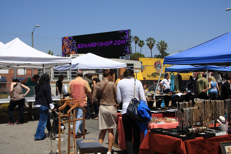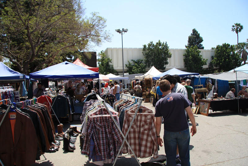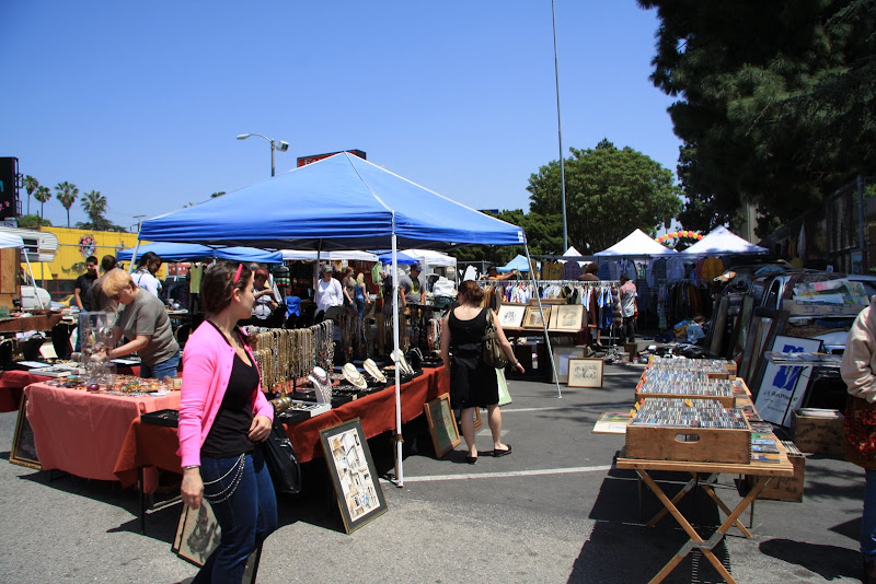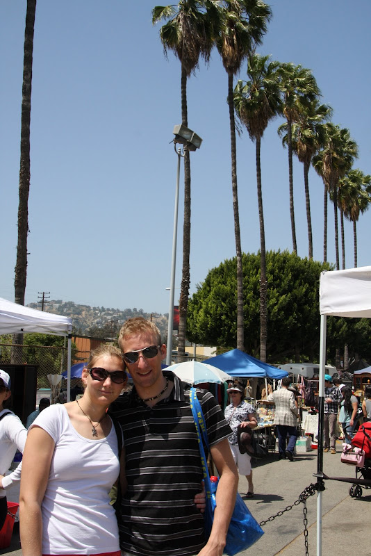 Gestern besuchten wir einen Flohmarkt in Los Angeles: Einiges grösser als diejenigen, welche wir aus der Schweiz kennen, aber auch hier konnte man Taschen, Kleider, Möbel und Accessoires kaufen. Was uns aber besonders faszinierte war die Austellung einer Künstlerin: Sie malt anhand von Fotos ein Schwarz-Weiss Portrait und ergänzt den Hintergrund mit Farben, Zeitungsausschnitten, etc – und dies alles zu einem erschwinglichen Preis! So zusagen die perfekte Erinnerung an unseren Roadtrip, hier werden wir später definitiv ein Bild bestellen!!