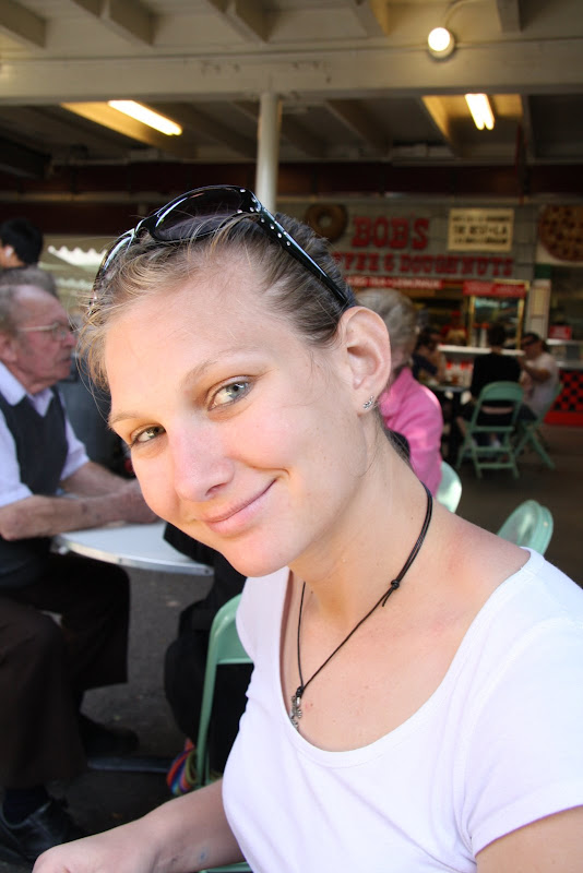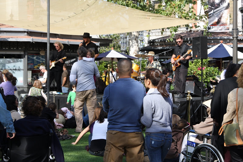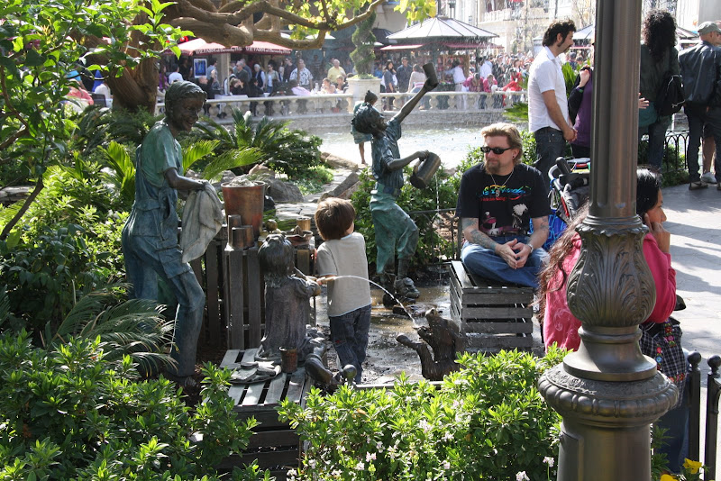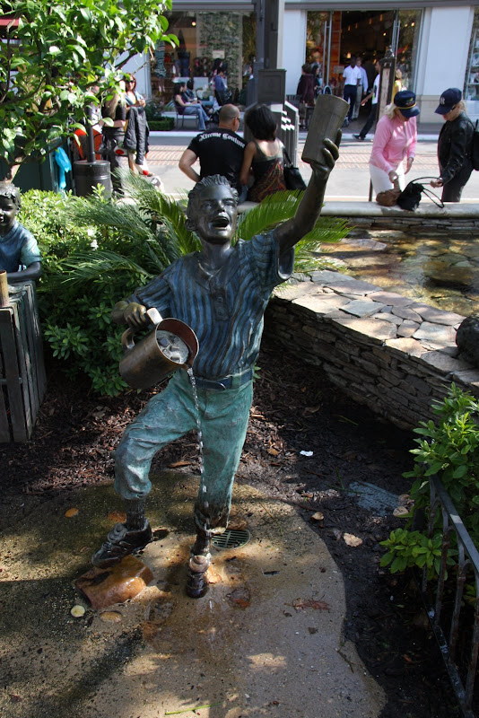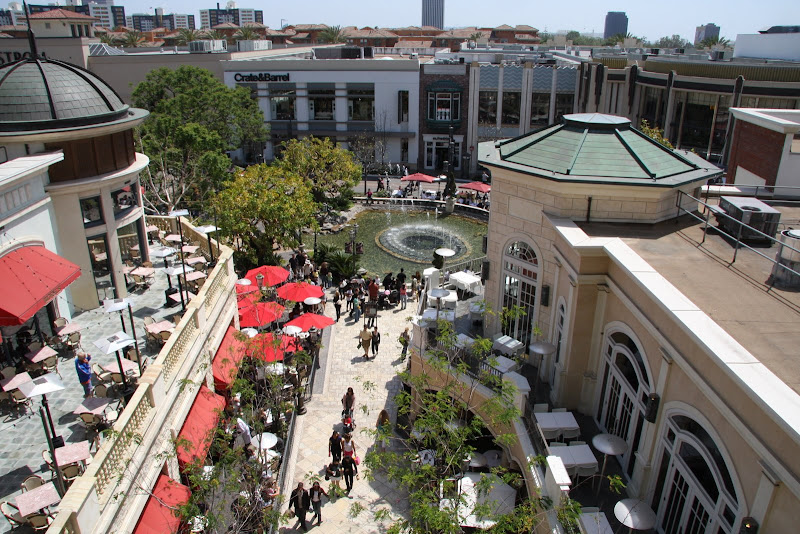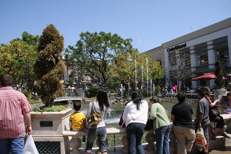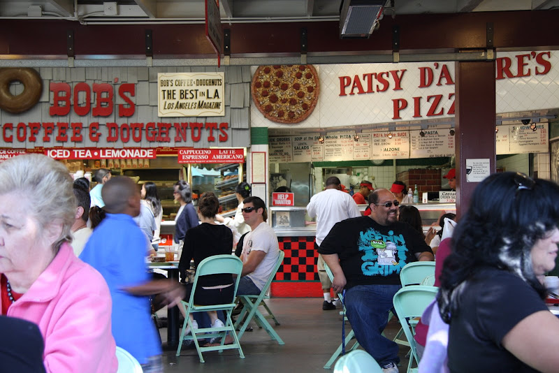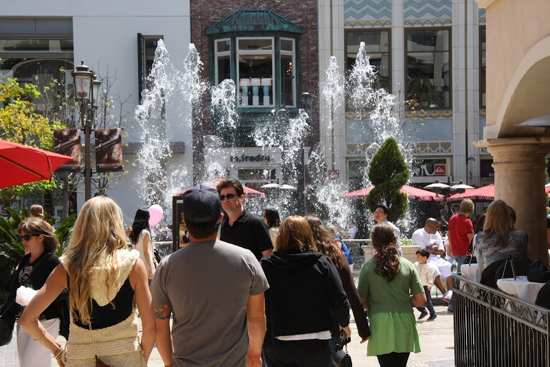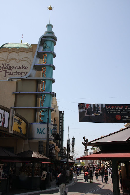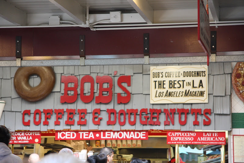 Weiter ging’s zur Grove Street und Farmers Market, im Parkhaus fährt man doppelspurig die Parkplatzetagen hoch und der Eingang des Parkhauses könnte mit den Vorhängen und Blumen locker als Hotelempfang durchgehen! Die ganze Shoppingmeile ist sehr schön gestaltet, man könnte schon fast vergessen, dass man sich inmitten einer Milionenstadt befindet! Auf der Suche nach etwas essbaren gelangen wir zum Farmers Market – hier befinden sich viele Foodstores auf kleinstem Raum. Der Farmers Market entstand schon vor über 75 Jahren: Arthur Gilmore kaufte vor langer Zeit zwei Ranches. Als er auf der Suche nach Wasser auf Öl stiess, wurde die Gilmore Oil Company gegründet. Bald darauf wurden Sport Events ausgetragen und die erste Rennstrecke für midget car racers wurde gebaut. Wenige Monate später eröffnete dann der Farmers Market, zu Beginn mit 18 Farmern, welche die Möglichkeiten nutzen, für eine Gebühr von 50 Cents pro Tag ihre Produkte anzubieten. Heute befinden sich zig Geschäft dort und man erhält, was das Herz begehrt: Fish, Hamburger, Donuts, Griechisch, Arabisch, Französisch, Chinesisch…
