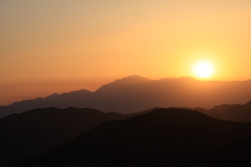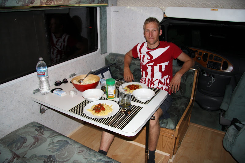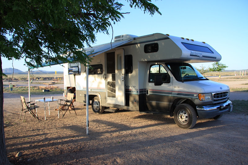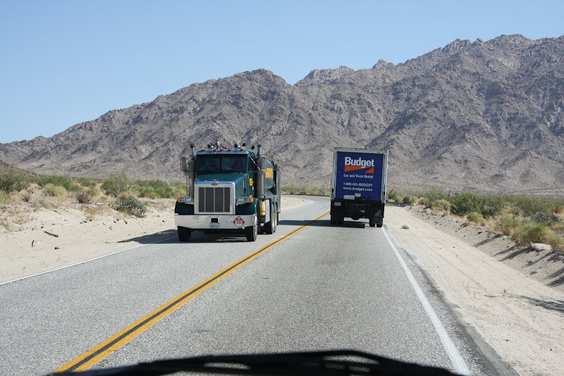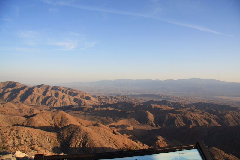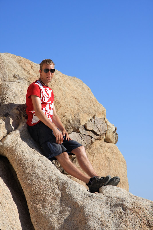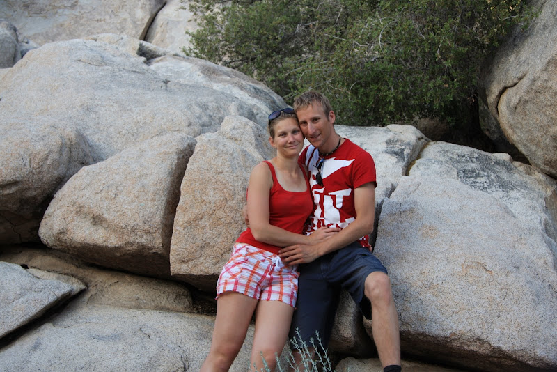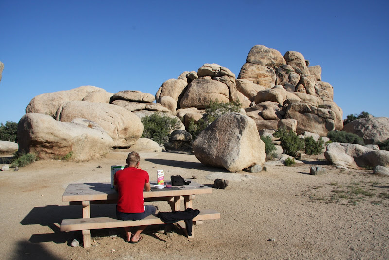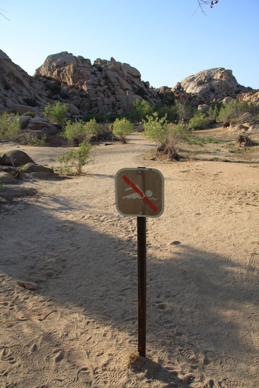 Nächstes Ziel war der Barker Dam selbst. Pascal hoffte, dass wir wenigstens auf diesem Trail die berühmte Rattle Snake zu Gesicht bekamen, ich hingegen wollte eher mit einem Coyoten Bekanntschaft machen (wenn auch nur aus der Ferne). Wir bekamen auf unserem Weg zum Damm aber nur Eidechsen und Antlope ground squirrles zu Gesicht. Auch hier bestaunten wir die spezielle Landschaft, bis wir über eine „Kletterpassage“ (Americ. für Stufen in den Fels geschlagen) schliesslich zum Baker Dam gelangten. Es hatte ziemlich wenig Wasser, aber an Hand der Linien am Fels konnte man gut erkennen, wie viel Wasser es haben kann! Schliesslich entdeckten wir auch noch ein Schwimmen Verboten Schild, auch nicht schlecht, in der Wüste!! 🙂 Anschliessend hiess es auf zum Keys View, von hier soll man bis nach Mexico sehen können und er soll fantastisch beim Sonnenuntergang sein. Leider war es aber heute smoggy, und so sahen wir nicht allzu weit, der Sonnenuntergang entschädigte uns aber. Anschliessend suchten wir unseren Low Budget Camping Platz: Ryan, nur 10 Dollar pro Nacht, dafür weder Strom noch sonstigen Luxus. Sehr klein mit nur 31 Plätzen, dafür sehr heimelig und wirklich total in der Natur – einfach super! Jetzt hiess es das erste Mal kochen in unserem Wohnmobil: Wir verwöhnten uns mit Penne al Pomodorro und Salat (ja, das gibt es in der USA zu kaufen 😉 ), doch fast wie zu Hause, nicht? Da wir in einem Nationalpark waren, durfte der Generator nach 7 Uhr nicht mehr verwendet werden, und so ging uns mit Wasserpumpe und Musik ziemlich bald der Strom aus – so genossen wir noch den Sternenhimmel und verzogen uns dann in unser Bett!