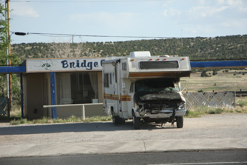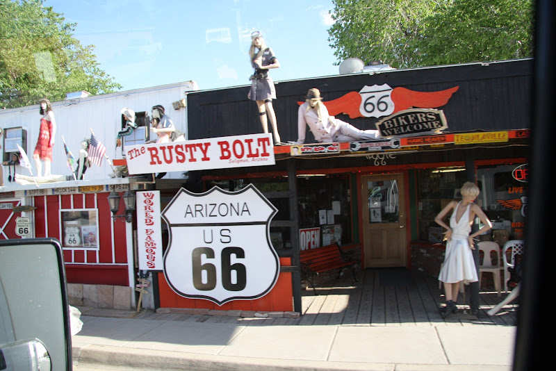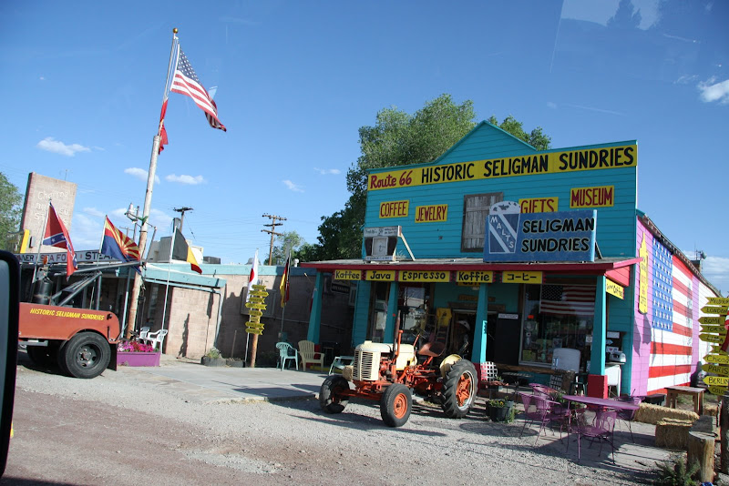 Weiter ging’s auf der historischen Route 66 Richtung Arizona. Langsam arbeiten wir uns aus der Wüste heraus und es wurde immer grüner und felsiger um uns herum. Hier wird nicht gerade zimperlich mit Hügeln umgegangen: Will man eine Strasse verlegen, so werden die Hügel „abgefräst“, teilweise sogar druchtrennt – irgendwie erinnert dieses Bild doch an Toblerone! Nach ein paar Meilen weiter erreichten wir dann endlich Seligman, ein Dörfchen, welches ebenfalls an der historischen Route 66 liegt und auch Wert darauf legt, dass man dies noch sieht! Hier fanden wir einen Campground, diesmal mit Full Huckup (Wasser, Strom, Abwasser) und probierten gleich unser neues Grillequipement aus. Okay, wir geben ja zu, wir haben es wohl etwas zu gut gemeint! 😉