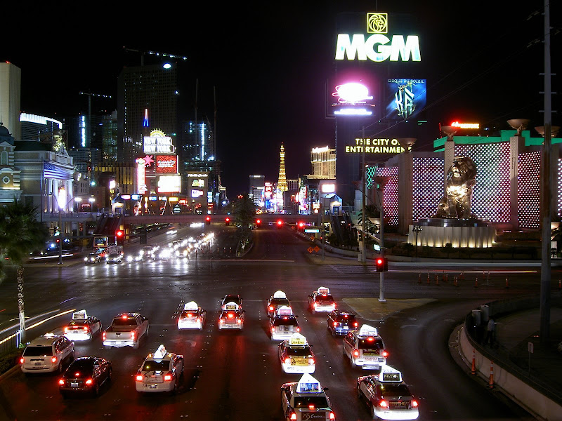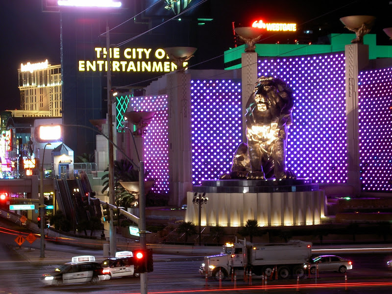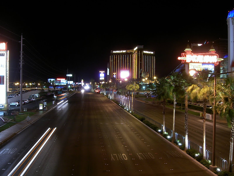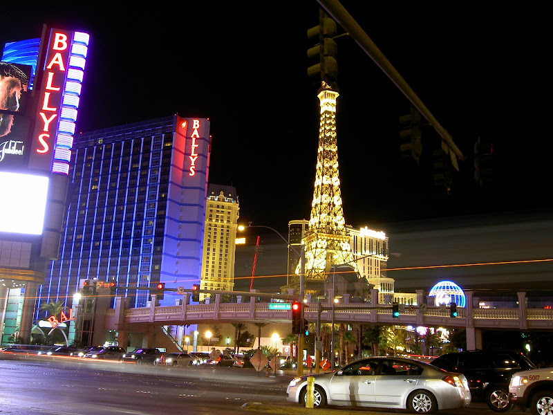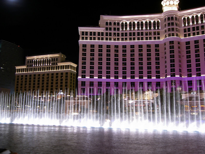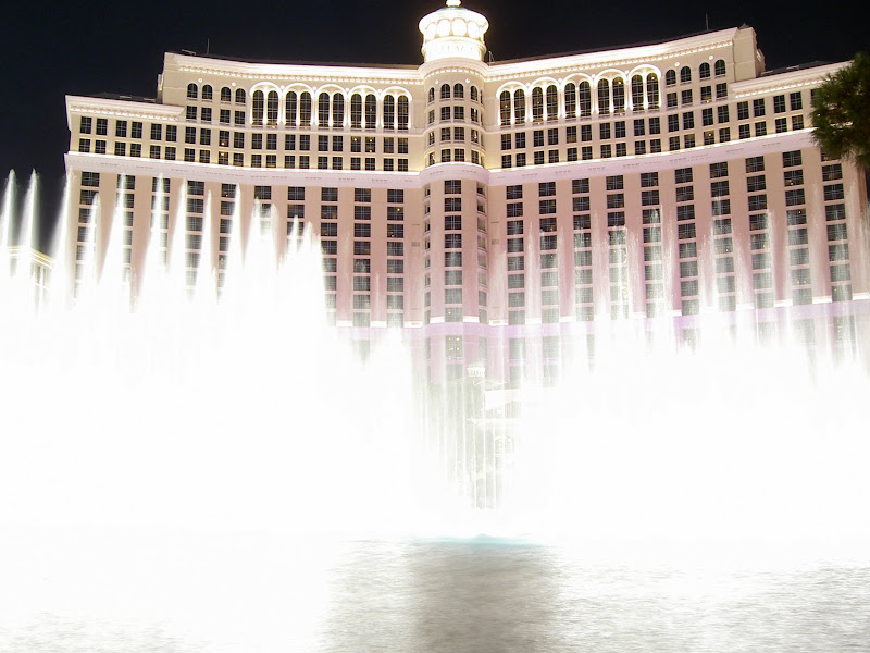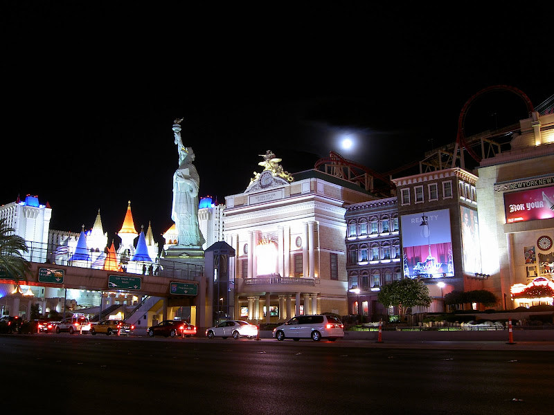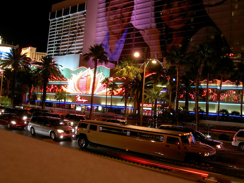 Nun war es aber an der Zeit für Vegas. Nur noch ein kurzer Besuch bei Campingworld trennte uns von der Casino Stadt. Wir erhielten einen Termin für den Generatorservice für heute und liessen uns dann zum 500 Circus Circus Drive hinnavigieren. Auf dem Campingplatz angelangt – oder sollte ich eher“besserer Parkplatz“ sagen? – mussten wir dann endgültig die Wanderkleidung ablegen und gegen die Ausgangskleidung tauschen! Was man auch nicht vergessen darf: Vegas ist seeeehhhr warm und so kam unsere Klimaanlage das erste Mal so richtig zum Einsatz. Wir entschieden uns, erst einmal den Strip hochzulaufen – ach ja, unser Campingplatz befindet sich am Rand von eben diesem „Strip“, wir sind also mitten im Casino-Herzen von Vegas! Bald kamen wir zu einer Ticketbox, die Eintritte für den jeweiligen Abend verkaufen. Wir standen ziemlich baff davor, so viel gab es hier zu sehen! Wir verschoben dies auf später und schauten uns erst einmal die vielen Hotels und Casinos von aussen an. Von innen lernten wir nur das Bellagio kennen und Pascal investierte die ersten scheuen 2 Dollar in einen Blackjackautomaten. Mit dem Shuttlebus ging es so gegen 2 Uhr langsam nach Hause. Zu erwähnen ist, dass es auch um 2 Uhr langsam angenehm warm wird und man problemlos mit Trägershirt unterwegs sein kann 😉 . Pullover braucht man höchstens in den Casinos: Klimaanlage! 😉