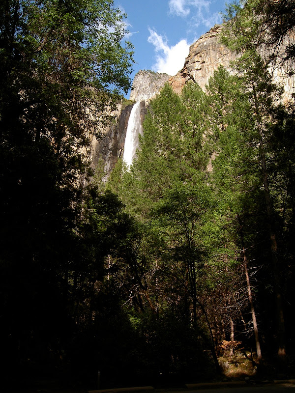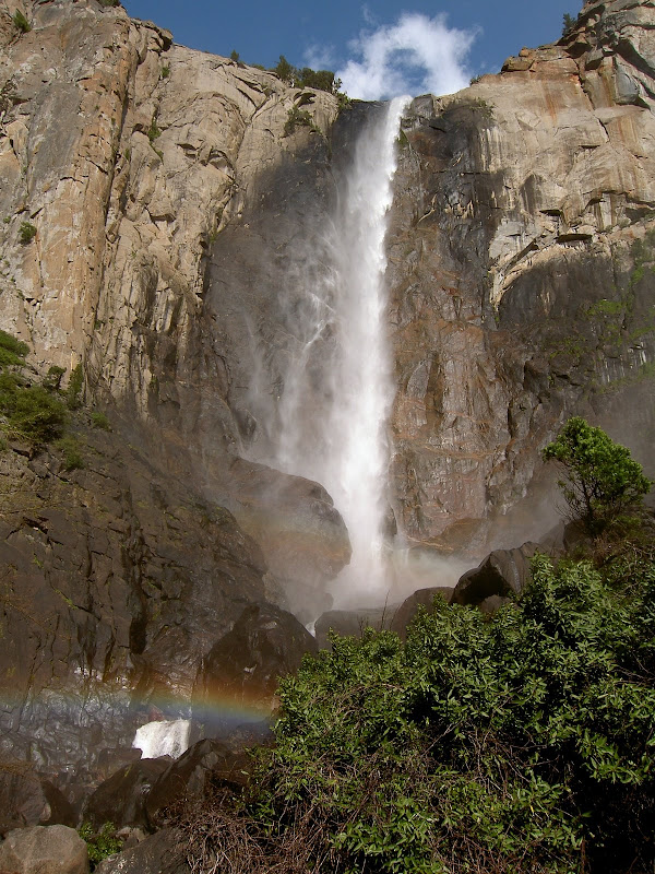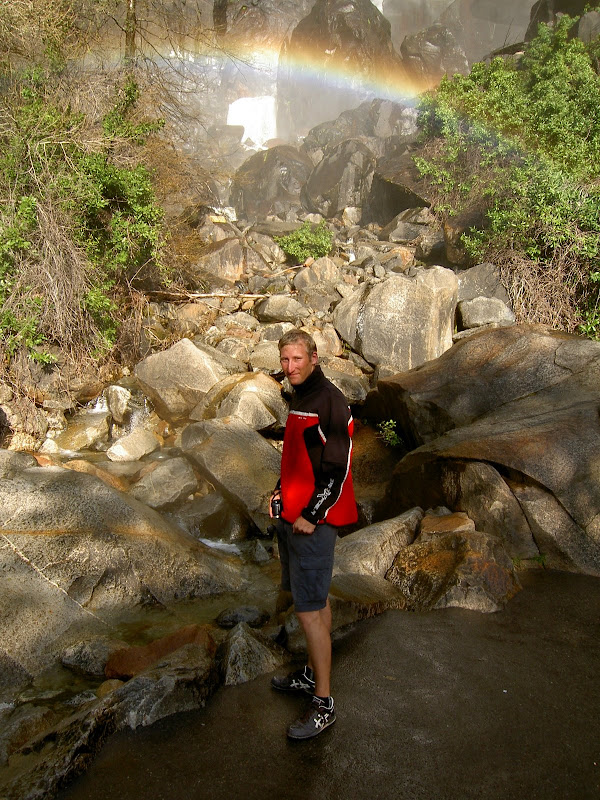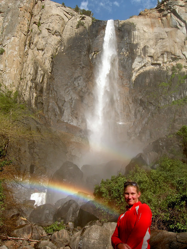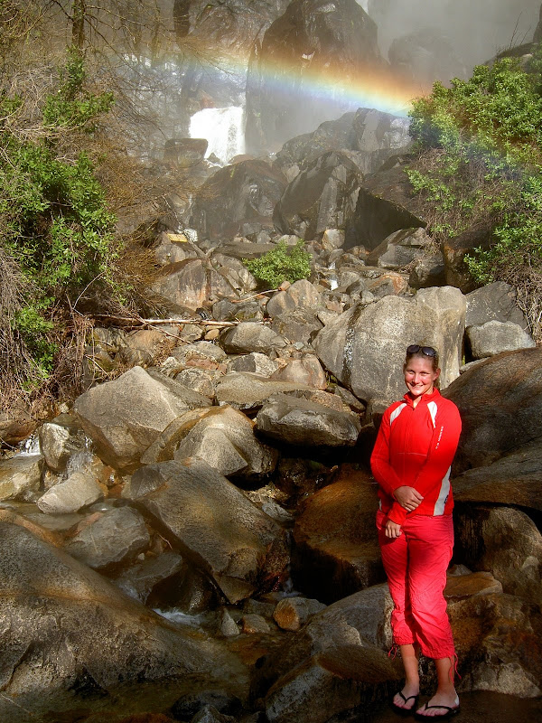 Wir nahmen den nächsten Shuttlebus, holten unseren Triton ab und fuhren anschliessend zu den Bridalveil Falls. Zum Glück konnte man den kurzen Hike auch mit Flipflops gehen – meine Wanderschuhe beschenkten mich mal wieder mit je einer Blatter pro Ferse und somit war ich über etwas weniger Schuh sehr glücklich! Bei den Falls angelangt wurden wir wieder einmal erfrischt, aber auch mit einem Regenbogen im Wasserdunst des Wasserfalls belohnt.