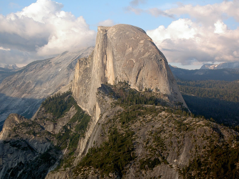 Nun erwartete uns eine etwas kurvenreichere Strasse zum Glacier Point. Auch hier darf man nicht länger als 25 Fuss sein – nochmals Glück gehabt! Unser Zeitplan ging voll auf und so waren wir kurz vor Sonnenuntergang dort. Während die Sonne nun langsam verschwand und der gegenüberliegende Horizont die Farben von Gelb über Orange bis hin zu Rot annahm, durften wir dem Ranger zuhören, der über die Wasserfälle des Yosemite Parks sprach. Dabei genossen wir die herrliche Aussicht übers Tal, speziell natürlich auch auf den Half Dome und den Yosemite Point!