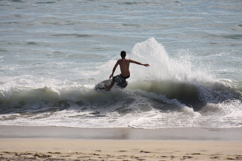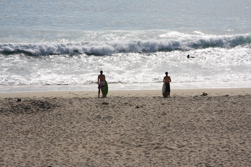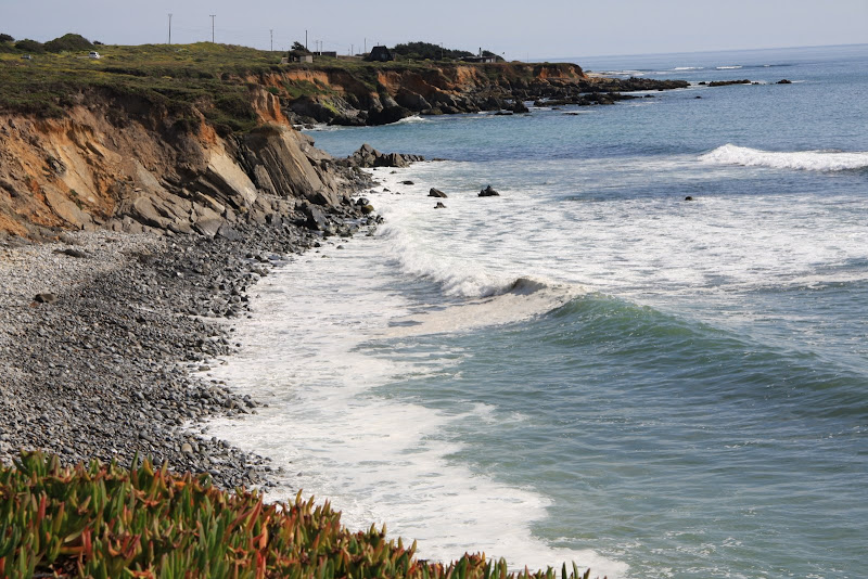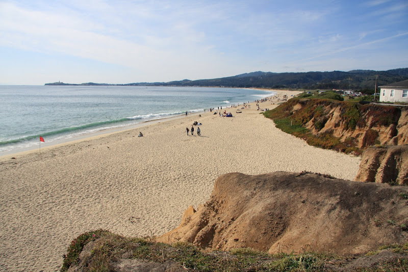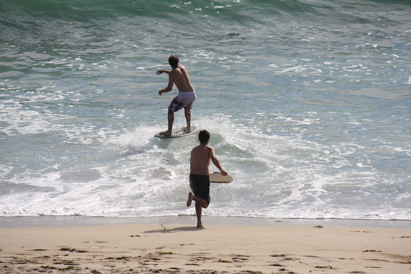 Nun folgten wir dem Highway 1 in den Norden. Dieser bietet immer wieder eine fantastische Aussicht über die Küste. Bei der bekannten Half Moon Bay angelangt erkundeten wir einen Teil des Küstenabschnitts zu Fuss. Dabei sahen wir neben Surfern auch ein paar Beachsurfer: Diese schauten, wann eine Welle in der optimalen Grösse auf den Strand treffen würde, holten dann Anlauf, warfen ihr Board auf den Sand, sprangen aufs Board und surften für ganz kurze Zeit in eben dieser an den Strand laufenden Welle.