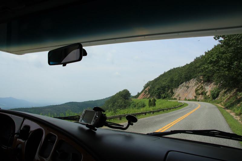 Am Morgen des 4. August fuhren wir dann die letzten paar Meilen im Shenandoa National Park. Nach dem Park führt der Skyline Drive als Blue Ridge Parkway weiter über den Grat der Blue Ridge Mountains. Die nächsten 300 Meilen Strasse und Overlooks sind ebenfalls National Park Territorium, allerdings nicht die Natur rechts und links davon. Der Unterhalt der Strasse durch den National Park Service ist auch wichtig, denn diese Route hat keinen anderen zweck als „Sightseeing“!