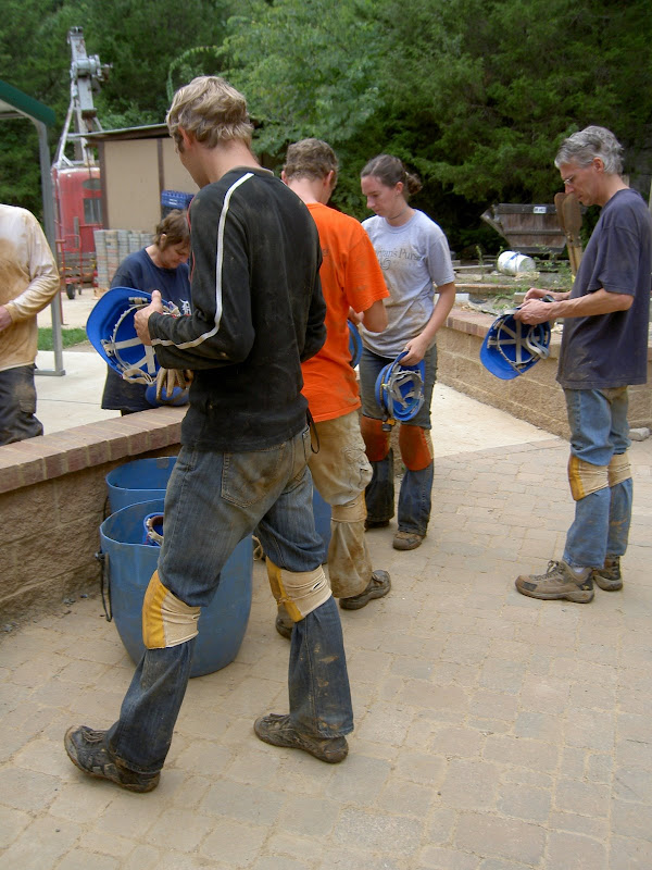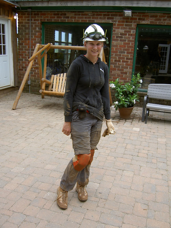 Um 1 Uhr gings dann los, ausgerüstet mit Helm, Licht, Handschuhen und Knieschonern. Im Gegesatz zur Ruby Falls Tour waren wir hier eine Gruppe mit lediglich 11 Leuten, also viieeel angenehmer 😉 Zuerst liefen wir durch die Höhlenräume, die für die 40min Sightseeingtouren beleuchtet und am Boden geebnet sind. Dann aber verliessen wir den zementierten Weg und schlüpften durch ein Loch in der Wand. Bereits ging es los – Kriechen war angesagt! Als nächstes durfte man sich eine steile Rampe am Seil hochziehen. Eine weitere Kriechpassage folgte („muess ich jetzt wörkli mitem Buuch am Bode chrüche?“) und dann eine Holzplanke, über die man balancieren musste. Und so gings weiter, bis wir im Grand Junction Room (übersetzt: Grosse Kreuzung) ankamen. Der Racoon Wild Cave scheint ein sehr verzweigtes Höhlensystem zu sein, denn von diesem Raum aus – man ahnts vom Namen – führen nicht weniger als 19 (neun-zehn) Gänge weg. Nicht dass wir irgend einen Ausgang sofort selber entdeckten, aber Kyle, unser Guide, erklärte das uns. „Dort gehen wir jetzt durch und irgendwo da unten werden wir in zwei Stunden wieder rauskriechen“.
