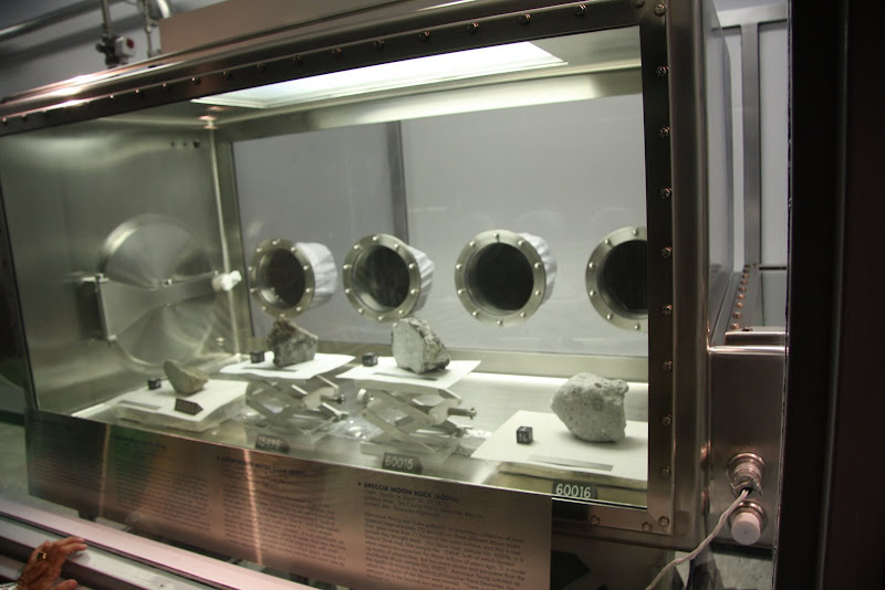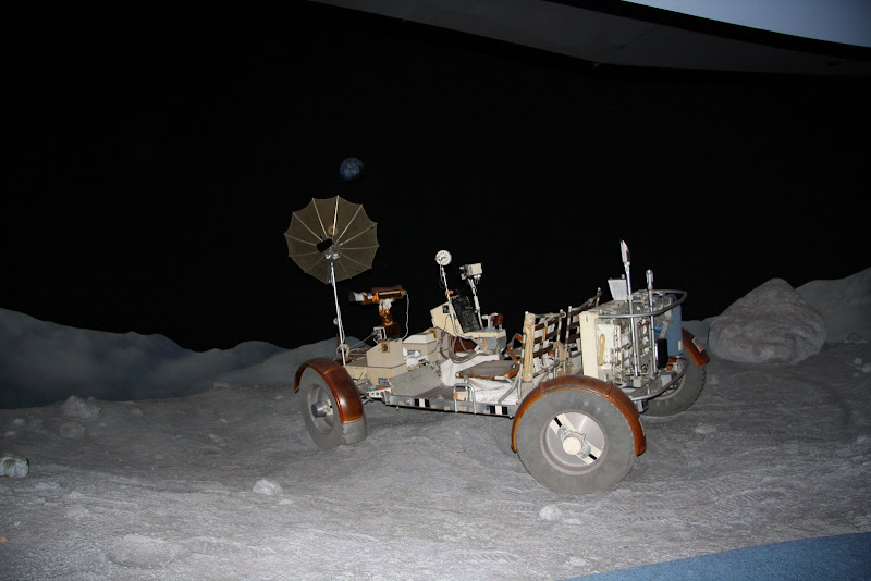 Nach der Besichtigung dieser riesigen Weltall-Kutsche fuhren wir mit dem Strassentram zurück ins Space Museum. Zeit zu vertrödeln gab es nicht, es standen noch einige weitere Shows und Vorstellungen auf unserer Liste. Nach einem schnellen Mittagessen sahen wir uns die Ausstellung des Museums an. Neben der echten Apollo 17 Kapsel, waren auch Mondrover, Mercury und Gemini Kapsel ausgestellt. Ein besonderer Kick verlieh auch das Mondgestein, das man berühren konnte (und das obwohl der Mond ja eigentlich aus Erdkruste besteht 😉 ). Weiters sahen wir einen Skylab Nachbau, das war quasi der Vorgänger der heutigen ISS – mag mich allerdings nicht mehr daran erinnern. Da wir uns für einmal eine Audiotour leisteten, konnten wir mit unserem Player auch zu jedem Austellungsobjekt Kommentare von früheren Astronauten dazu anhören, was wirklich Spass machte.