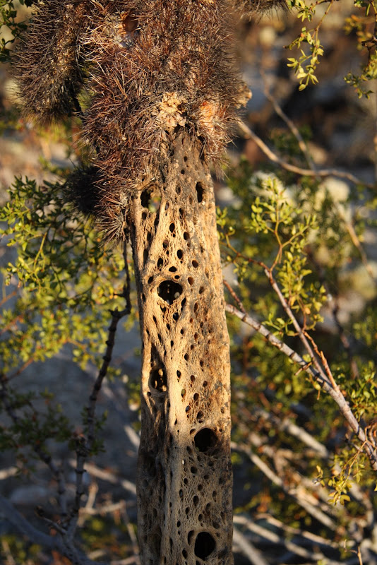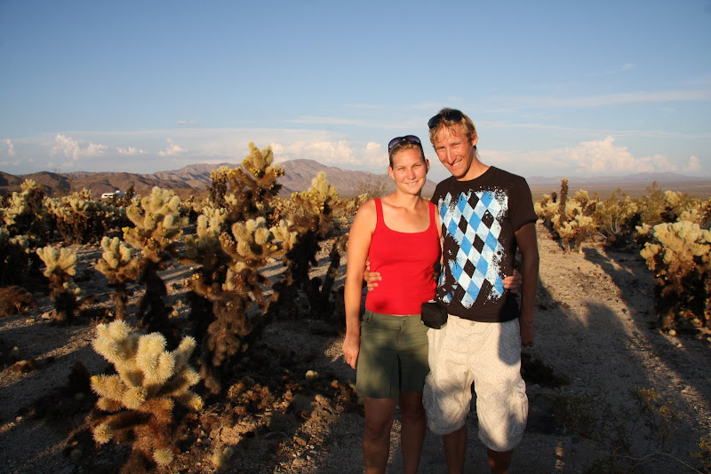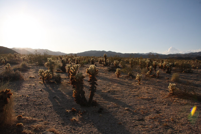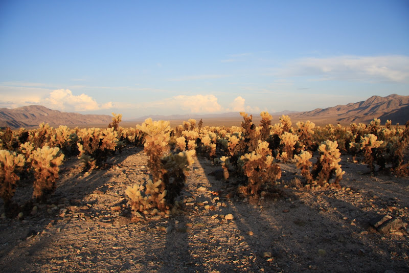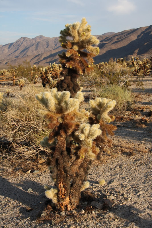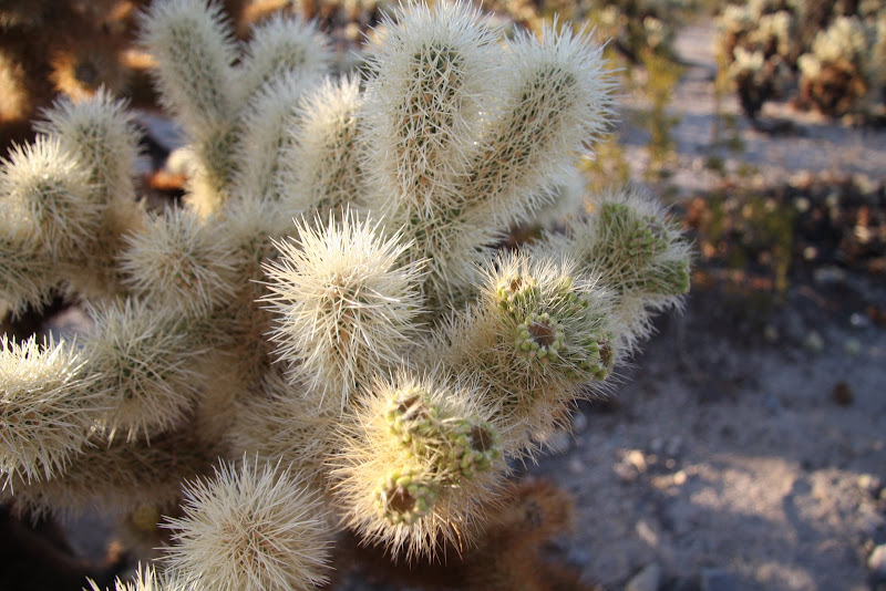 Unsere Route führte weiter bis auf die Interstate 10, so näherten wir uns dem Joshua Tree National Park vom Süden her. Die südliche Strasse durch den Park hatten wir noch nicht gefahren und so gab es neben der speziellen, vorbeiziehenden Landschaft auch noch einen ungeplanten Stopp bei einem beeindruckenden Kakteenfeld. Die Kakteen hier haben zurecht den Namen Teddy Bär Kaktus. Von weitem sehen sie aus, als wären sie von einem flauschigen Fell überzogen – alles spitzige Nadeln.