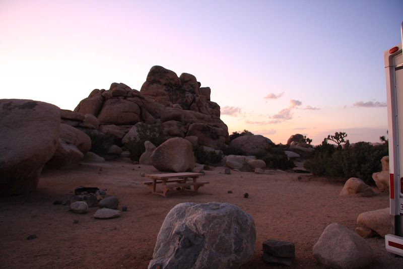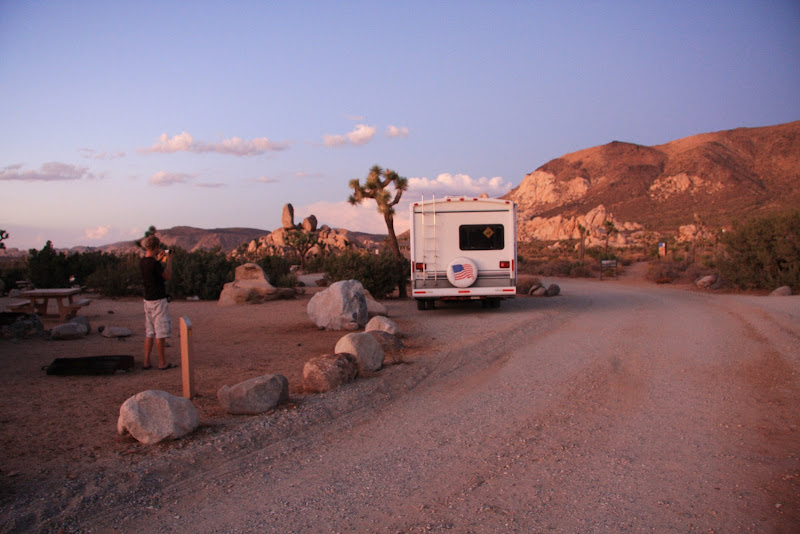 Da es schon bald eindunkelte, waren wir auf der Suche nach einem Campground. Anderst als anfangs Mai besuchen im Hochsommer weniger Besucher den Park, so dass nun einige Campgrounds geschlossen waren. Komischerweise waren aber auch Campgrounds geschlossen, die nach Anschlagsbrett am Visitor Center eigentlich geöffnet sein sollten. Wir hatten schon bald den ganzen Park durchfahren und gelangten schlussendlich zum Ryan Campground. Hier verbrachten wir vor 3.5 Monaten unsere erste Nacht im Motorhome. Zu unserer Überraschung war dieser Camping geöffnet! Überglücklich fuhren wir durch den Loop und fanden sogar unseren Platz wieder – unbesetzt. Wir genossen die Sonnenuntergangstimmung und verbrachten die letzte Nacht unseres Roadtrips in dieser speziellen Umgebung.