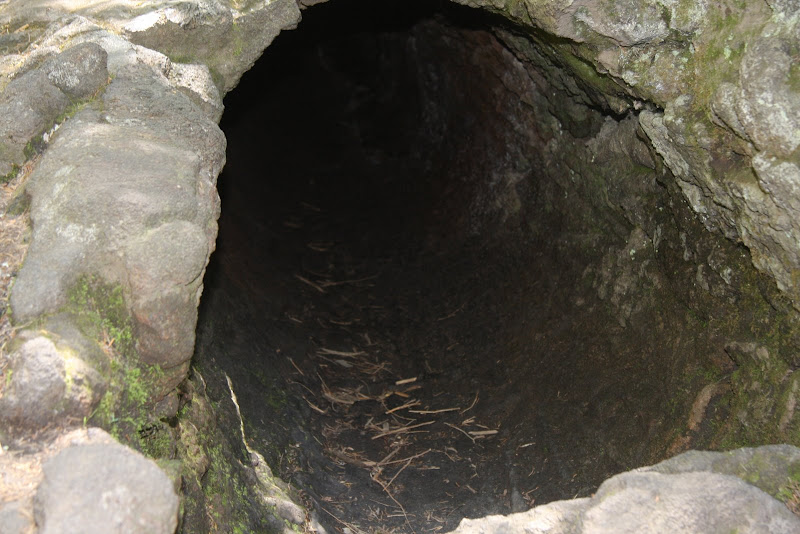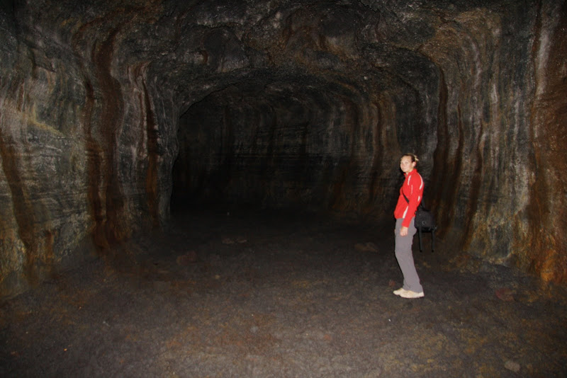 Nach 38 Meilen Fahrt von Woodland aus erreichten wir nun also Ape Cave. Bei dieser Bezeichnung stellten wir bloss eine kleine Höhle vor, die man schnell besichtigen kann – es stellte sich aber als etwas längeres heraus. Nach ein paar Metern Laufen gelangte man zum Eingang der Höhle, dabei handelte es sich um ein Lava Tube (Lava Röhre). Diese Tubes entstanden in fliessenden Lavaströmen, die aussen langsam abkühlten und erstarrten. Im Innern aber hielt sich die Temparatur und Lava konnte durch eine Art Tunnel weiterfliessen. Nachdem die Eruption endete, leerte sich dieser Tunnel – die Lava Tube ist komplett. Das Exemplar, vor dem wir stehen, war über 1 1/4 Meilen begehbar. Sofort kehrten wir zu unserem RV zurück um die kurzen Hosen gegen lange auszutauschen und uns mit Faserpelz und Gaslampe auszurüsten.