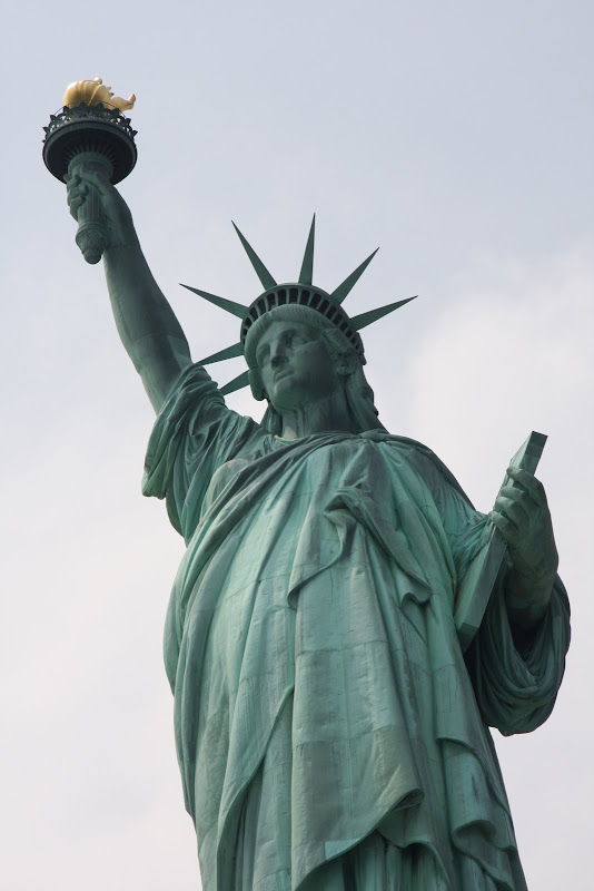 Am nächsten Tag (27. Juli) liefen wir vom World Trade Center aus zwischen den Finanz-Hochhäusern der Wall Street bis zum Battery Park am Ende der Insel von Manhatten. Von dort aus kann per Fähre zur Liberty Island mit der Freiheitsstatue und weiter zur Ellis Island fahren. Im Battery Park sahen wir schon bald, dass es eine Warteschlange durch den ganzen Park gibt. Zuerst aber mussten wir dafür anstehen, um nur die Tickets zu kaufen, bevor wir uns zur Monsterschlange stellen konnten. Glücklicherweise kamen uns die etwa 1.5h Wartezeit kürzer vor, da entlang des ganzen Weges immer wieder Strassenkünstler für Unterhaltung sorgten.