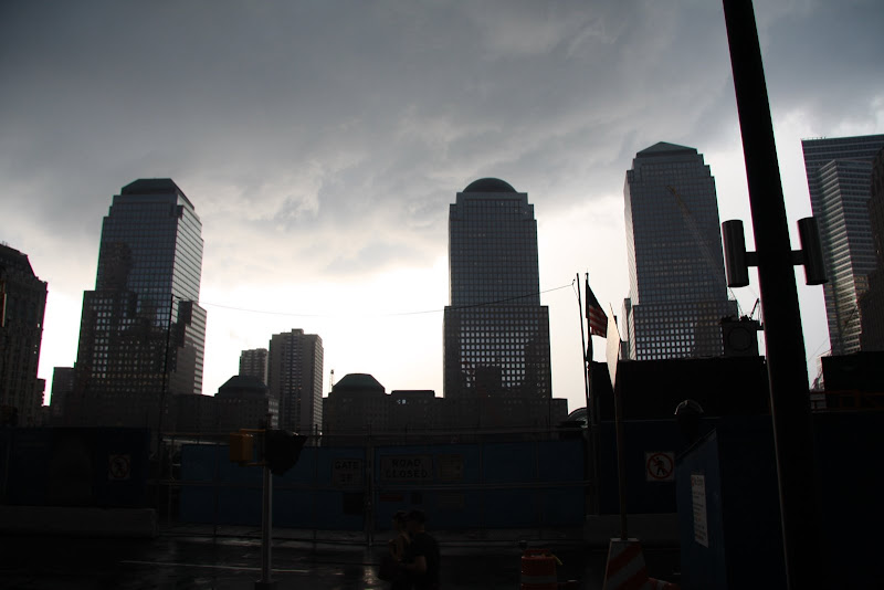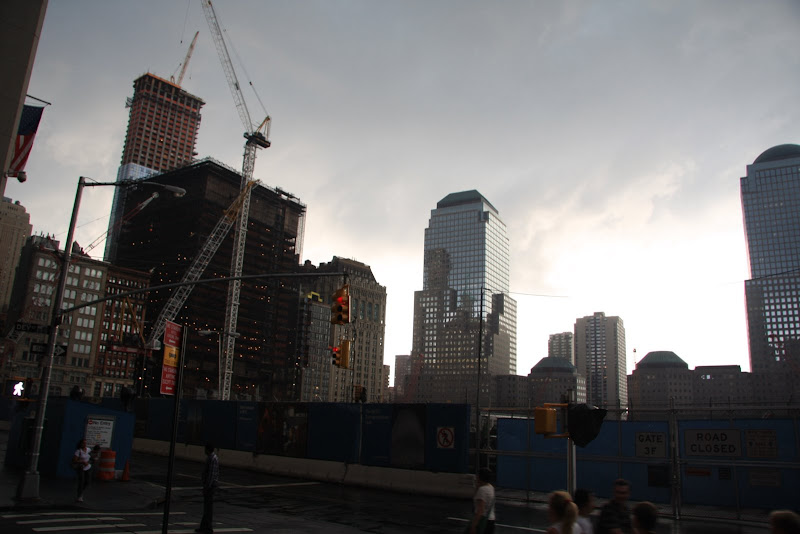 Nach unserer Ankunft um etwa 5 Uhr abends gingen wir sofort los, um New York zu entdecken. Der Weg in die Grossstadt war relativ kurz: 4 Blocks entfernt fanden wir eine U-Bahn Station (PATH), mit dessen Zug wir bei der nächsten Haltestelle beim World Trade Center aussteigen konnten. Diese Station befindet sich direkt in der Baustelle des neuen World Trade Centers, alles ist relativ provisorisch und durch offene Stellen in den Wänden kann man ein bisschen erahnen, wie riesig diese Baustelle tatsächlich ist.