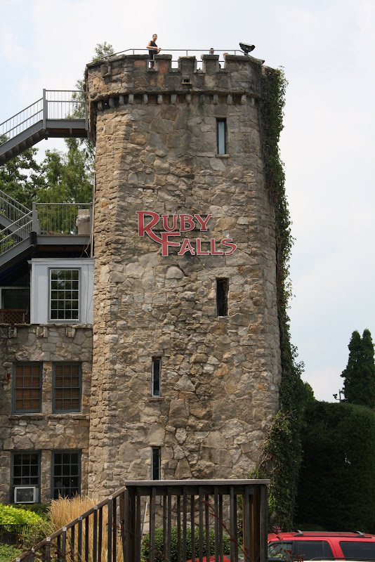 Nach Sevierville fuhren wir am 8. August auf der Interstate 75 Richtung Süden bis nach Chattanooga. Nach unserem Höhlentour-Prospekt befinden sich in Tennessee der grösste Teil der Höhlen in den USA. Natürlich durften wir uns das nicht entgehen lassen. Als erstes standen die Ruby Falls auf dem Programm. Fotos liessen viel versprechen: Ein etwa 50m hoher, farbig beleuchteter Wasserfall inmitten einer Höhle.