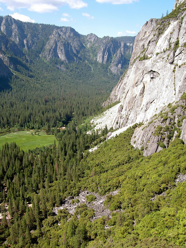 Aller guter Wanderungen sind bekanntlich drei! So musste Pascal heute ein weiteres Mal dran glauben! Wieder ging es ziemlich nach oben, wir wagten uns an den Fuss des höchsten Wasserfalls in Nordamerika, des Yosemite Falls. Wir hatten Glück, dass wir den Park im frühen Sommer besuchten, denn im Herbst ist vom Yosemite Fall nichts mehr übrig. Die andern Wasserfälle jedoch sind das ganze Jahr über im Park zu bestaunen. Dies liegt daran, dass der Yosemite Fall das viel kleinere Einzugsgebiet hat und somit im Herbst schlichtweg vertrocknet, bevor der Schnee wieder zurückkehrt. Etwas später als am Tag zuvor machten wir uns also auf zum Upper Yosemite Trail. Um 9 Uhr wagten wir uns die vielen Switchbacks hinauf. Bis zum ersten Overlook, dem Columbia Rock, gab es schonmal ganze 60 Stück! Doch hier wurde man schon mit der ersten Aussicht belohnt.