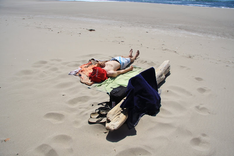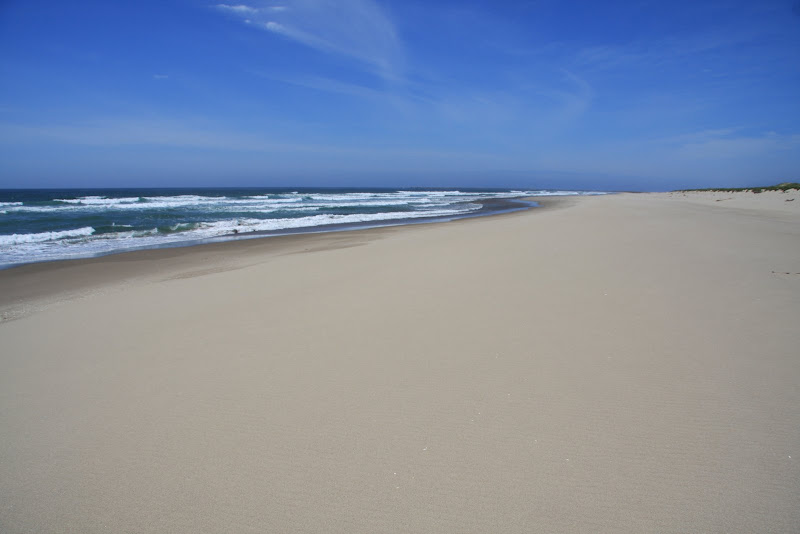 Wir begannen mit einem kleinen Trail. Er führte uns im Umpqua Gebiet vom Highway bis zu den Dünen. Da sich zwischen dem Highway 101 und den sandigen Küsten noch ein Streifen Wald befand, hatten wir bis anhin keine Ahnung wie die Dünen wohl aussehen werden oder wie gross sie sind. Nach einer halben Meile war es dann so weit. Da wir vor hatten, danach dem Beach Trail bis zum Meer zu laufen, waren wir mit Badtuch, Wasser und Kampfschläppli ausgerüstet unterwegs.